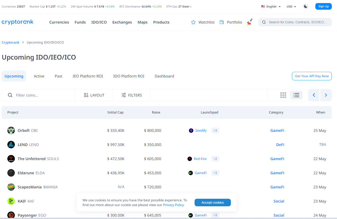 ICO/IEO/IDO信息和回报率查询