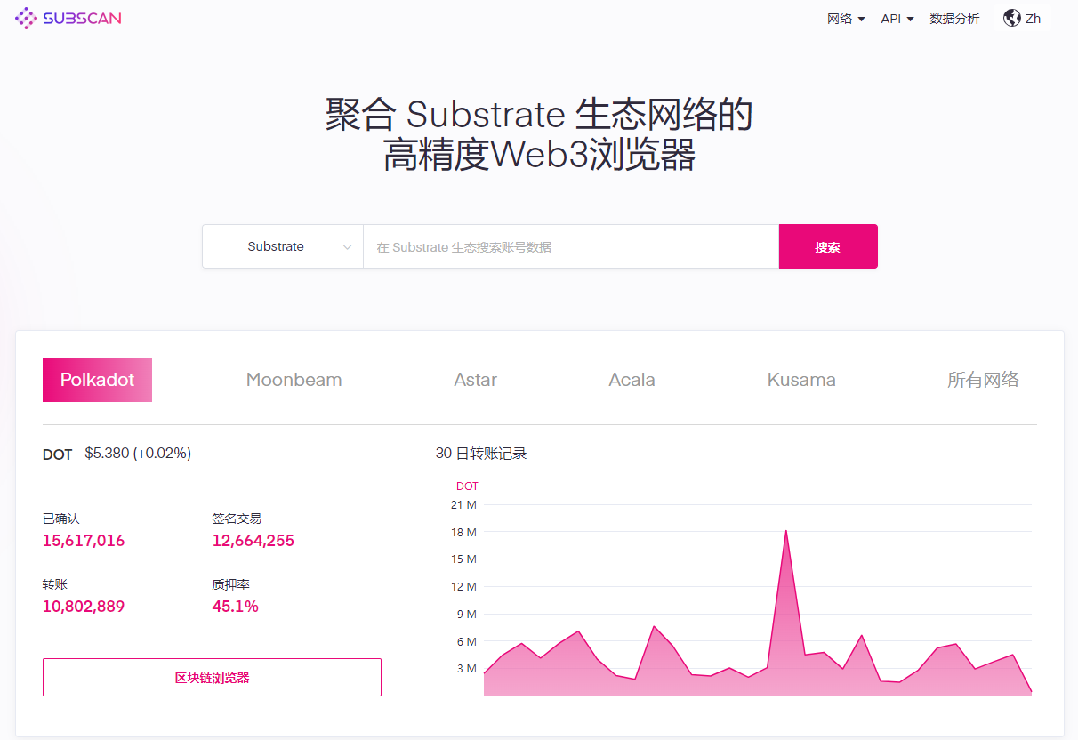 Subscan是一款聚合的Substrate生态网络区块浏览器,主要功能如下: