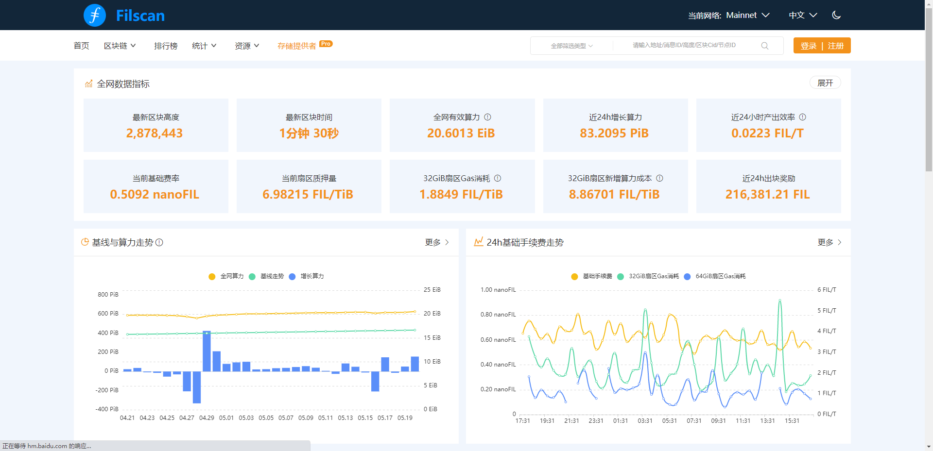Filscan区块浏览器是Filecoin生态基础工具,提供实时链上相关数据。集查询Filecoin区块、交易、FIL代币、钱包等信息的网站,实时同步更新Filecoin所有节点信息。