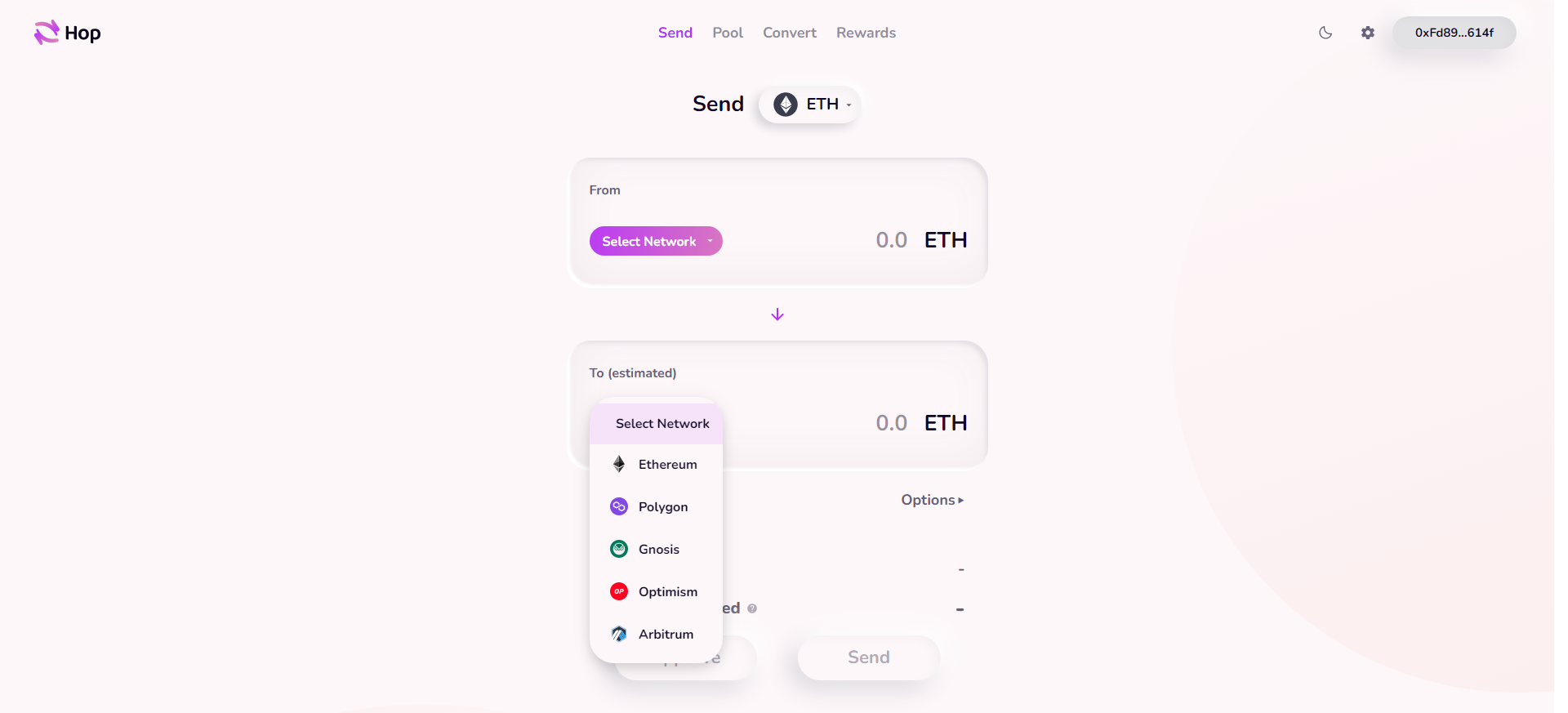 所以,该页面提供Hop Protocol跨链DEX的专用界面,允许用户在Hop Protocol支持的4条主流网络之间自由切换,选择跨网络的区块链资产进行交易。这简化了用户跨链交易的操作,提供了一个一站式的跨链交易解决方案,有助于打通不同网络之间的资产交换壁垒。
