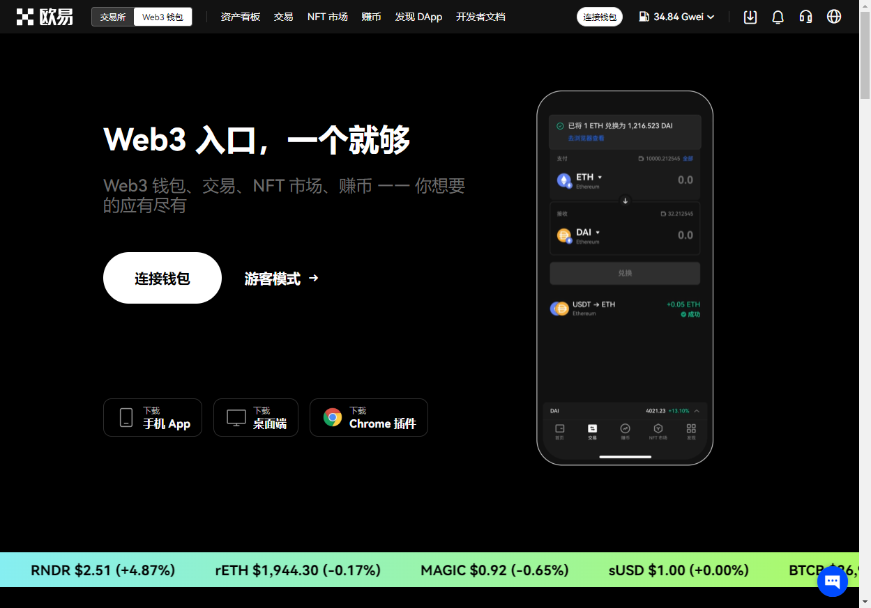 欧易 Web3 钱包非常适合希望在 EVM 链和非 EVM 链开发功能的 DApp 的用户们。受益于 OKX Web3 钱包的多链连接和静默切链功能,用户能够在不打开插件钱包的情况下,在 DApp 上无感知的使用各个链上的功能。在当前的钱包市场中,并没有钱包支持这样丝滑的体验。