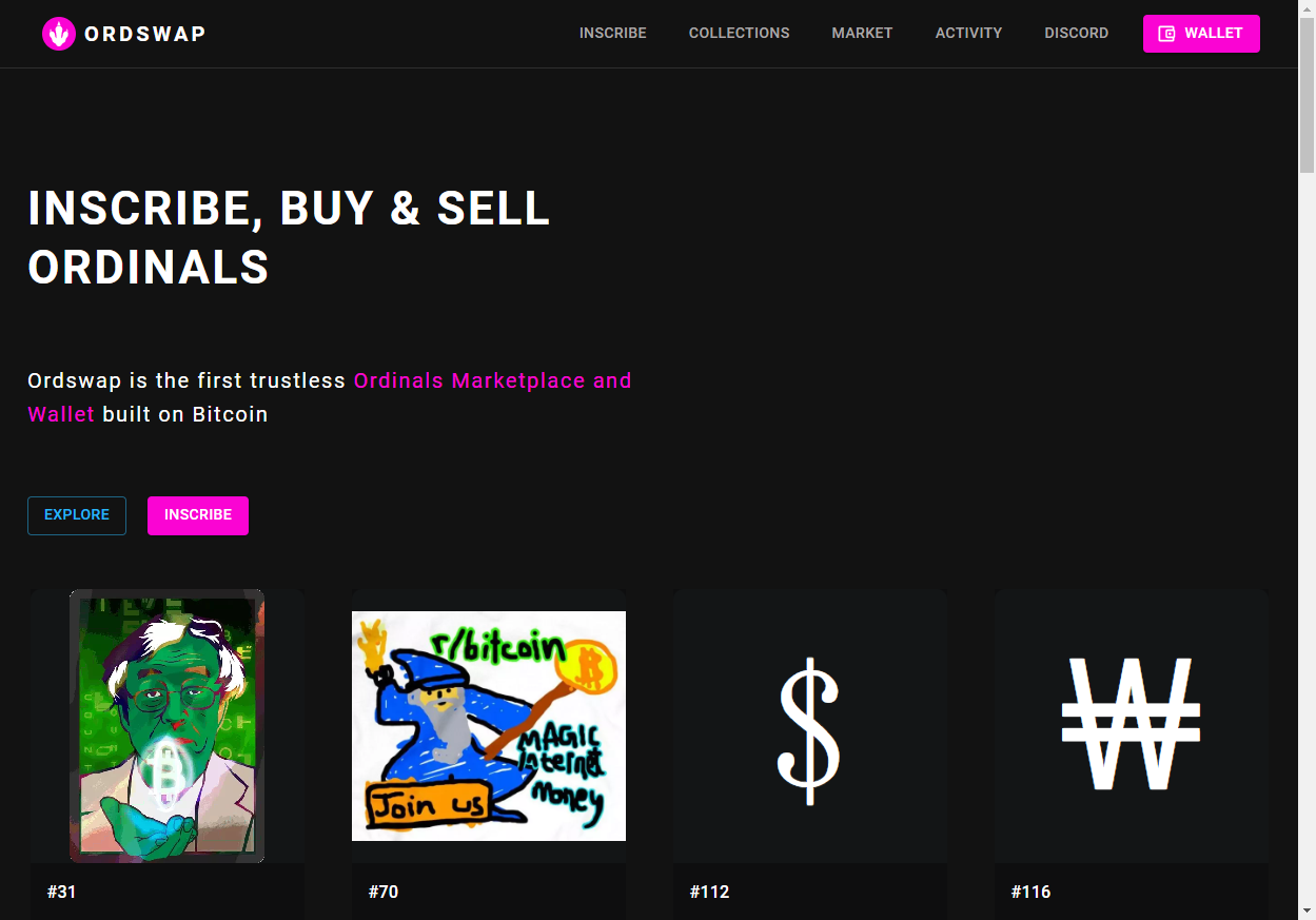 1. Ordswap是首个建立在比特币网络上的无需信任的Ordinals NFT市场,也是规模最大的市场。
