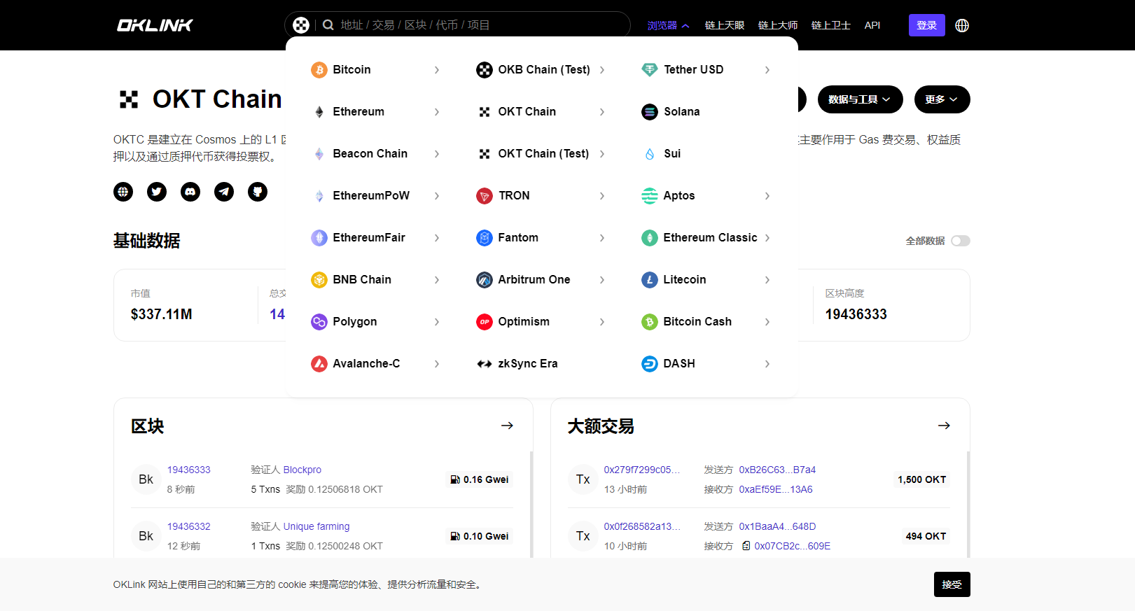 OKLink是全球领先的多链区块链浏览器,提供比特币、以太币、莱特币以及BTC区块、BTC减半、ETH销毁信息等数据信息,旨在成为全球最好的区块链浏览器。
