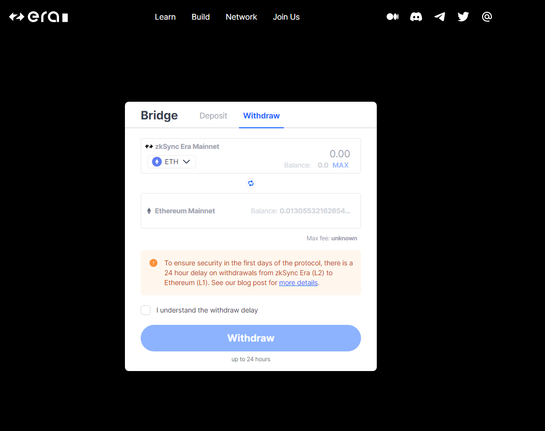 使用 zkSync Era Bridge,您可以轻松地在以太坊主网和 zkSync Era 网络之间转移资金。 通过未来证明 zkEVM 扩展以太坊的安全性和价值,享受更快、更便宜和更高效的交易。